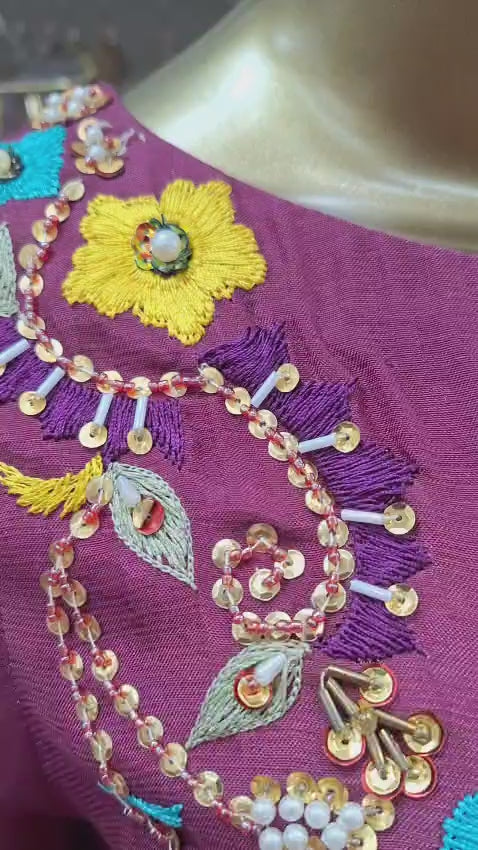 Step into the spotlight with this striking magenta ensemble, adorned with intricate floral embroidery in turquoise, yellow, and white. Paired with a sunshine-yellow and aqua dupatta, it’s the perfect choice for festive gatherings and summer celebrations.