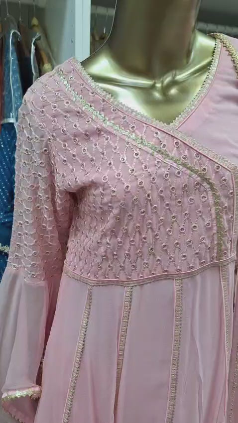 Embrace the beauty of pastels with this blush pink ensemble — where grace meets charm. This soft pink outfit is perfect for a festive day or an evening soiree.