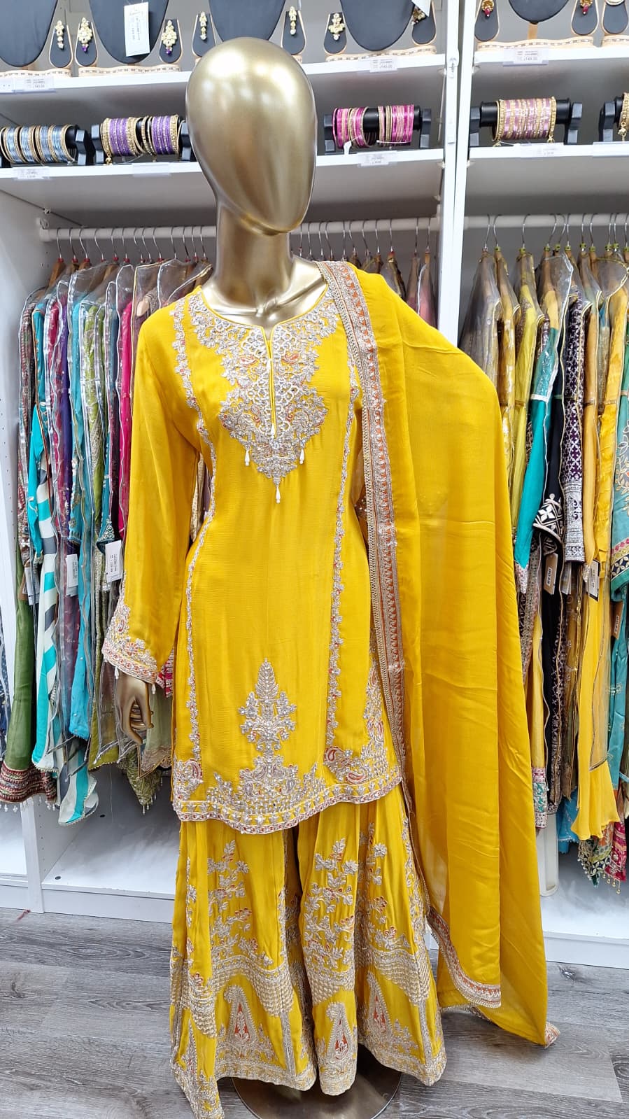 YellowSharara #YellowMagic #ZariZardozi #SunshineStyle #FestiveFashion #DesiGlowU #TraditionalWithATwist #WeddingWardrobe #GoldenGlam #DesiYellowMagic #GoldenGlow #DesiFashionGoals #ModernMeetsTradition #EthnicOutfitInspo