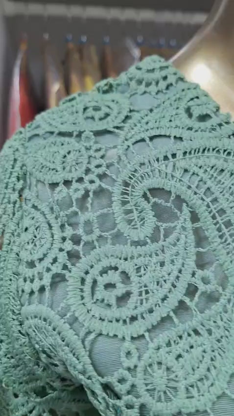 Sage that soothes ✨ Intricate lace kurta, airy farshi bottoms, and a crinkled sheer dupatta—effortless from brunch to mehendi.