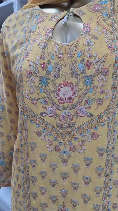 Where tradition meets trend—this embroidered beauty is your wardrobe’s sunshine moment. Turn heads this festive season in mustard florals and timeless charm.