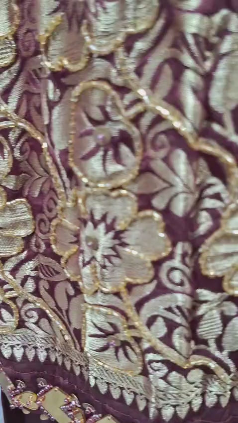 Dripping with elegance – this maroon suit with intricate golden embroidery and a beautifully patterned dupatta is a royal choice for weddings, festive nights, or grand celebrations.