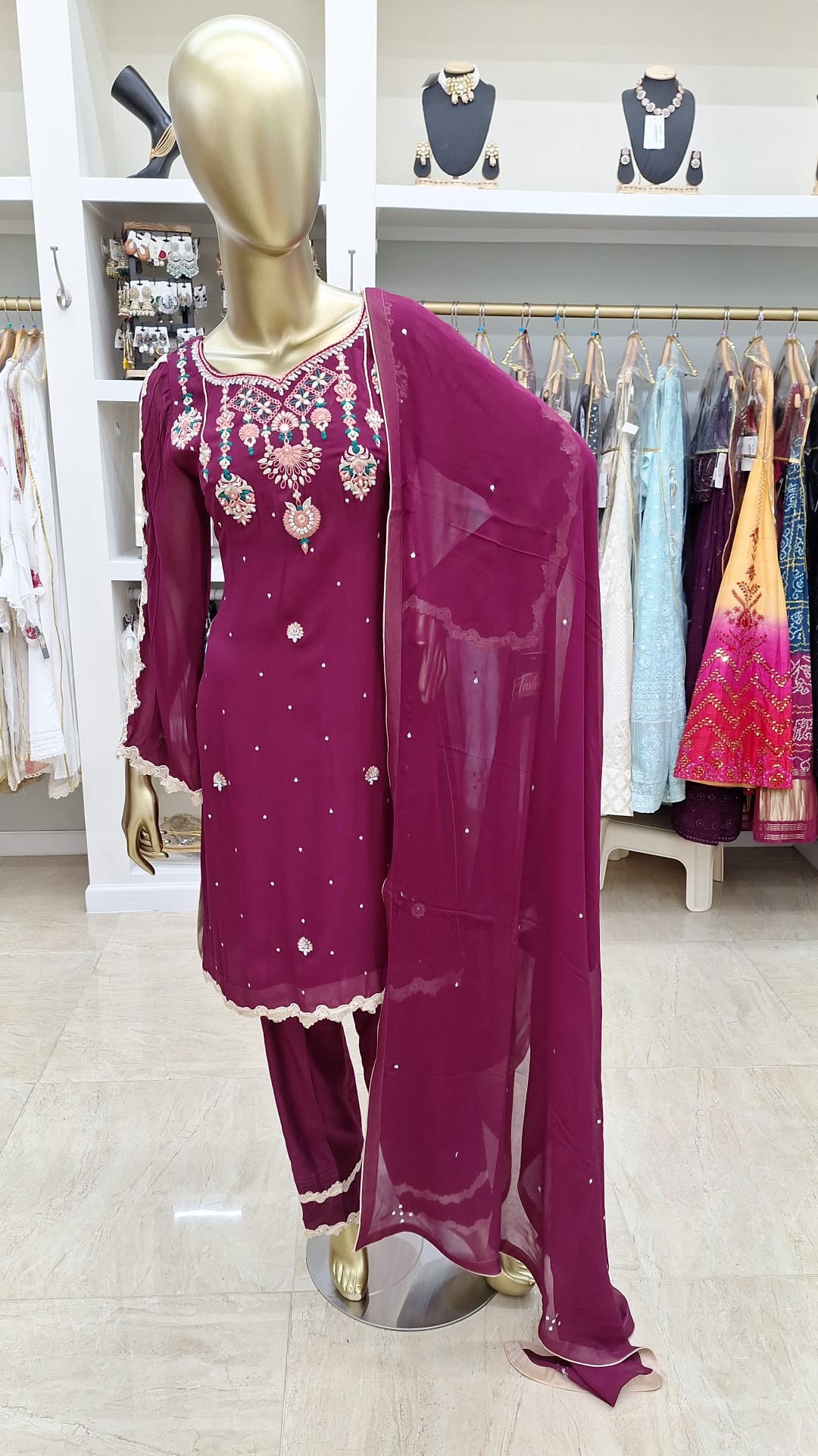 #BerryBeauty #DesiElegance #ThreadworkMagic #EmbellishedSuit #FestiveFits #TraditionalWithATwist #SouthAsianFashion #GracefulGlam #ChicAndClassic #DesiOOTD #MinimalWithDetail #EveningGlamour #TimelessTradition