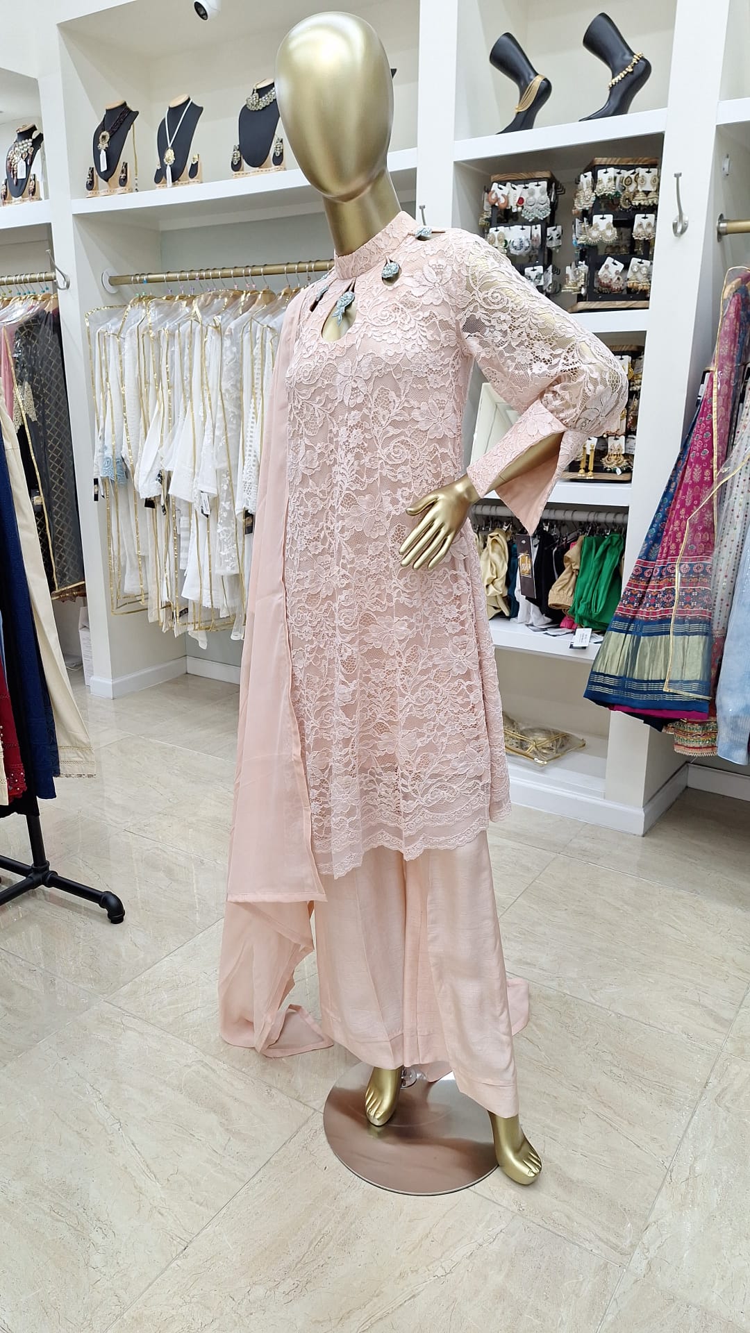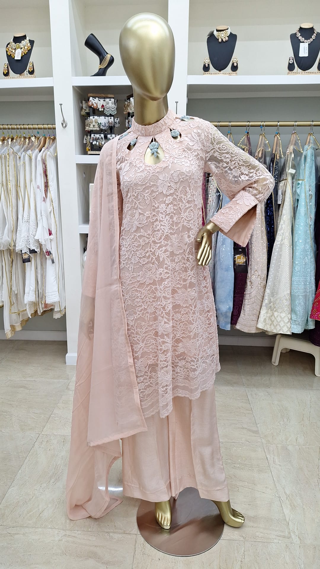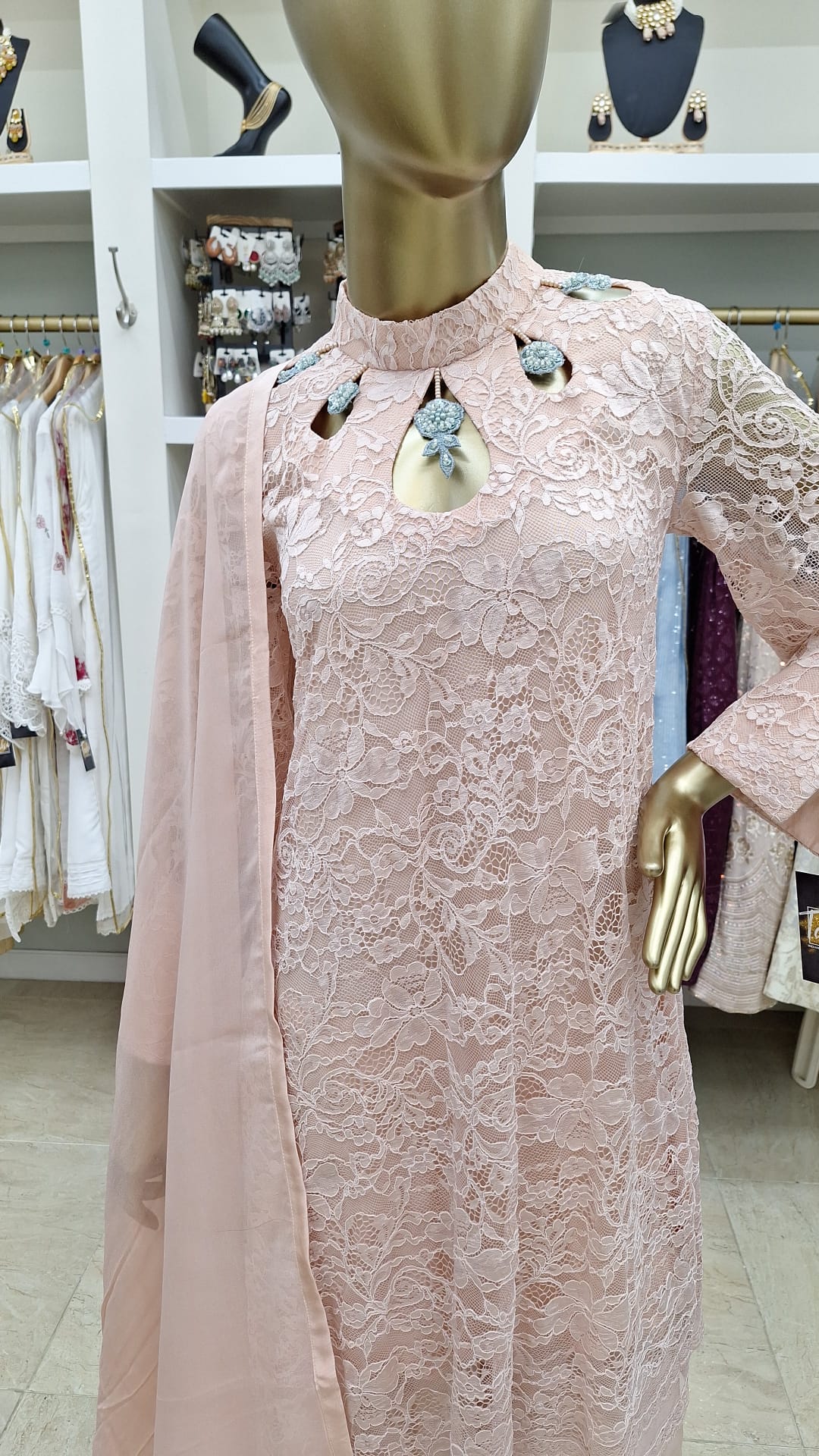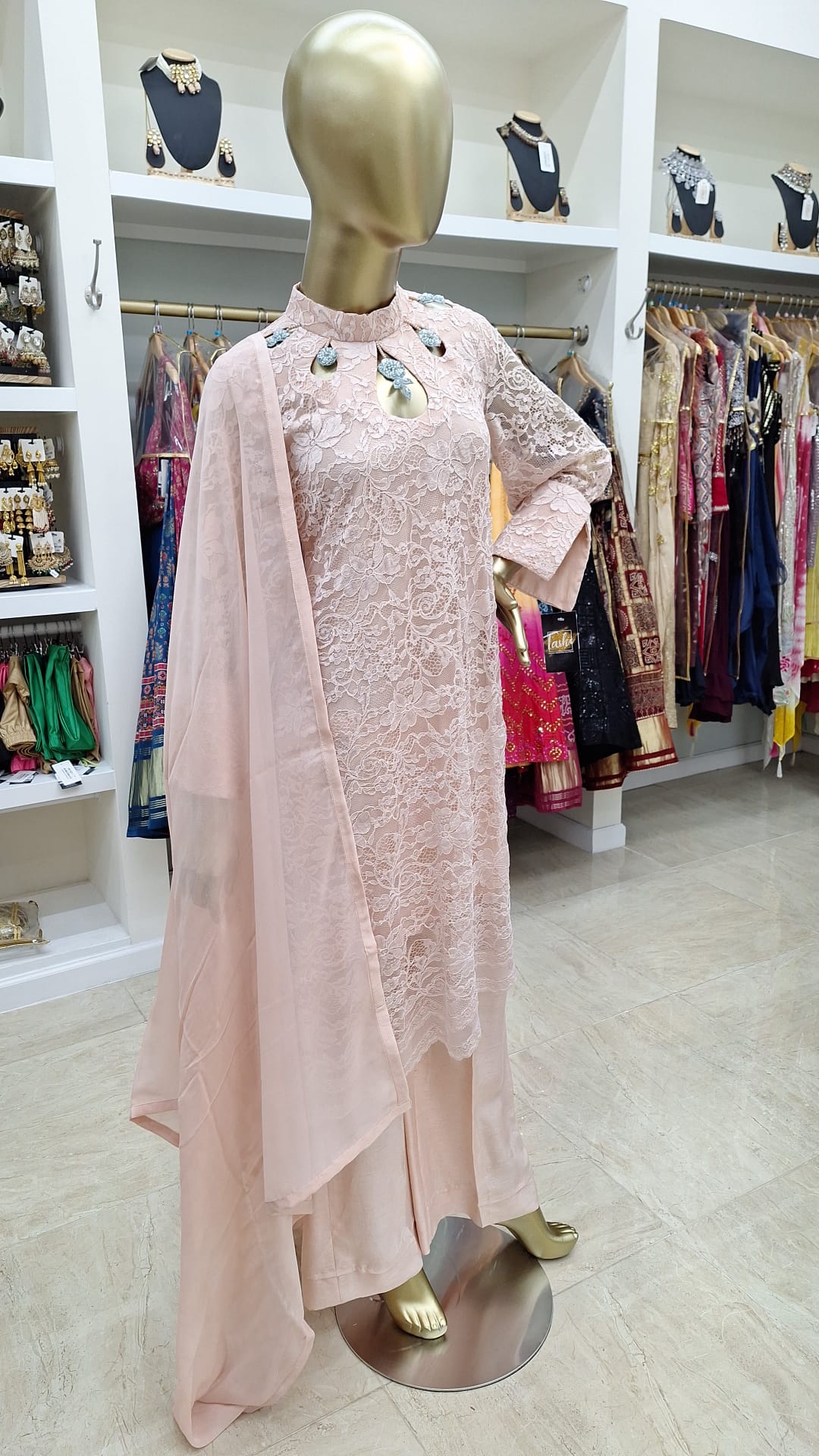 Soft, subtle, and so stunning — this pastel pink lace ensemble is the definition of graceful glam. Perfect for intimate events, daytime weddings, or when you just want to feel effortlessly elegant.