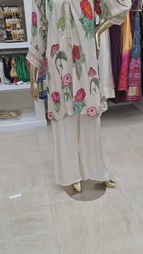 Step into effortless freshness with this ivory floral kurti set — blooming with colorful hand-painted vibes and breezy elegance. A perfect pick for daytime strolls, brunches, or garden parties!