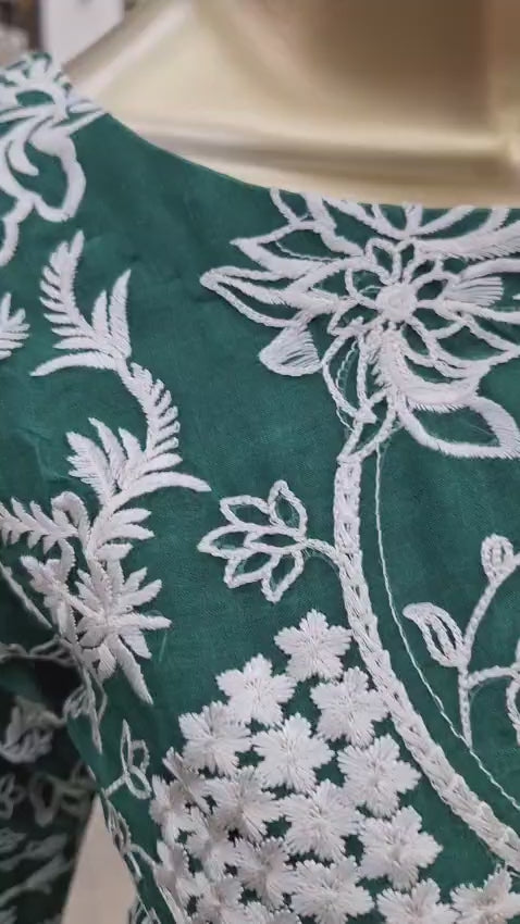 Grace in every thread .This rich emerald green outfit features intricate white embroidery that adds a touch of heritage charm to a modern silhouette. Ideal for festive luncheons or Eid soirées.