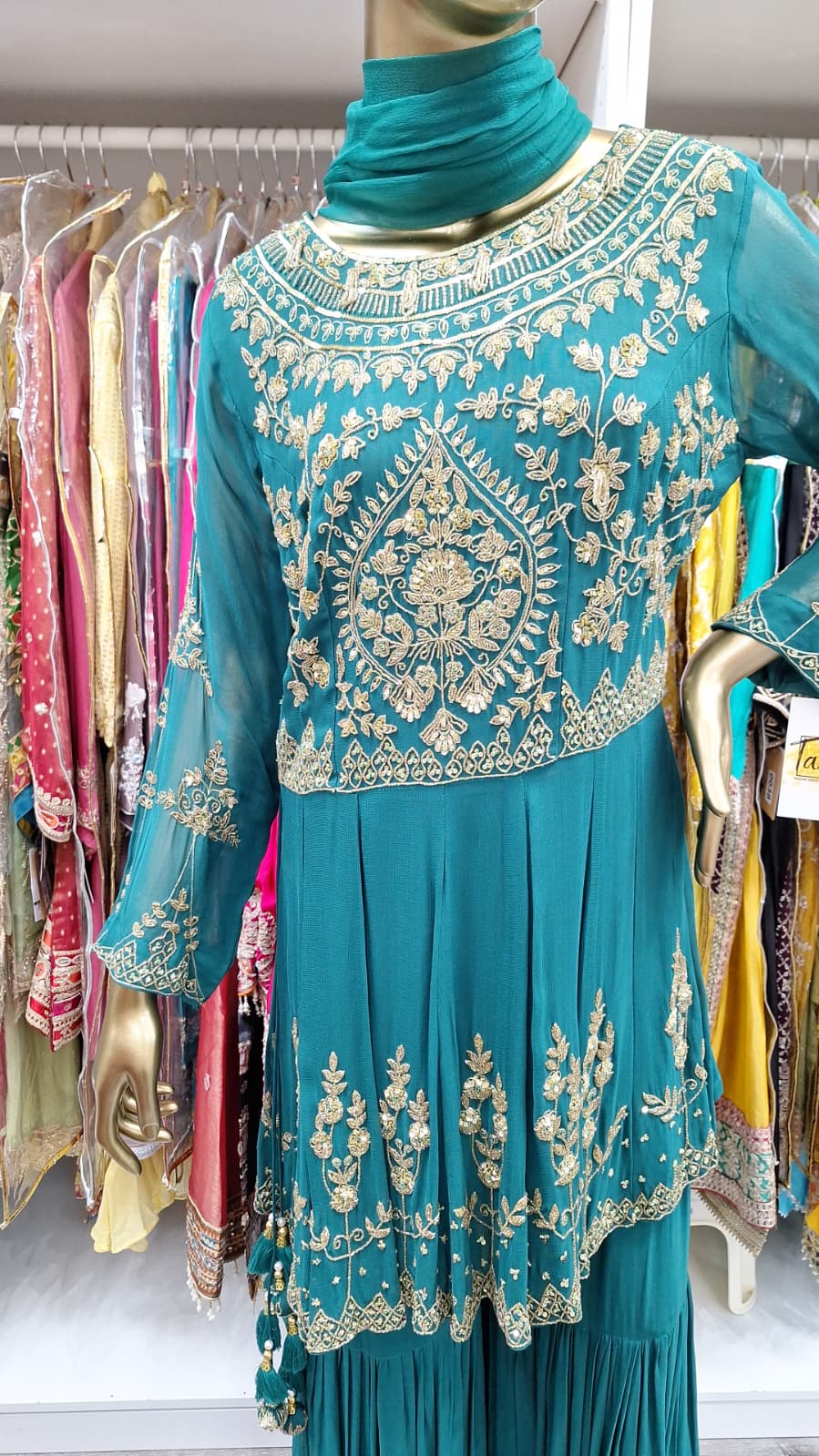 #EmeraldElegance #TealTradition #ShararaStyle #DesiGlam #FestiveFashion #GoldenGlow #EthnicChic #RegalVibes #SouthAsianStyle #GlamInGold