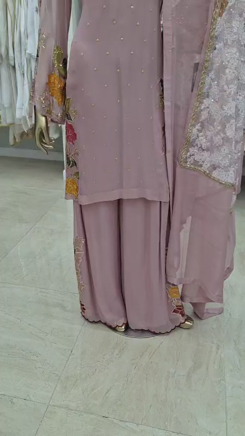 A delicate blend of grace and tradition. This blush pink sharara set is perfect for festive flair and timeless elegance.