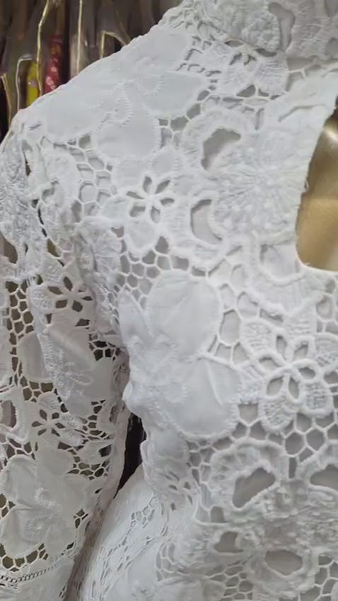 A dreamy blend of delicate white lace and serene blue ombré—this outfit is a breath of fresh style. Light, breezy, and effortlessly graceful for festive mornings or chic daywear.
