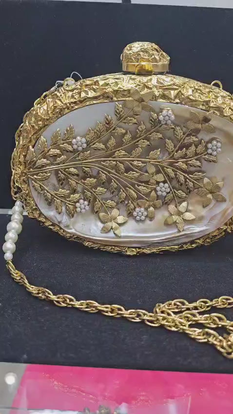 #GoldenElegance #LuxuryClutch #RegalStyle #FloralLuxury #GoldenGlow #EveningGlam #OpulentStyle #CrownInYourHand