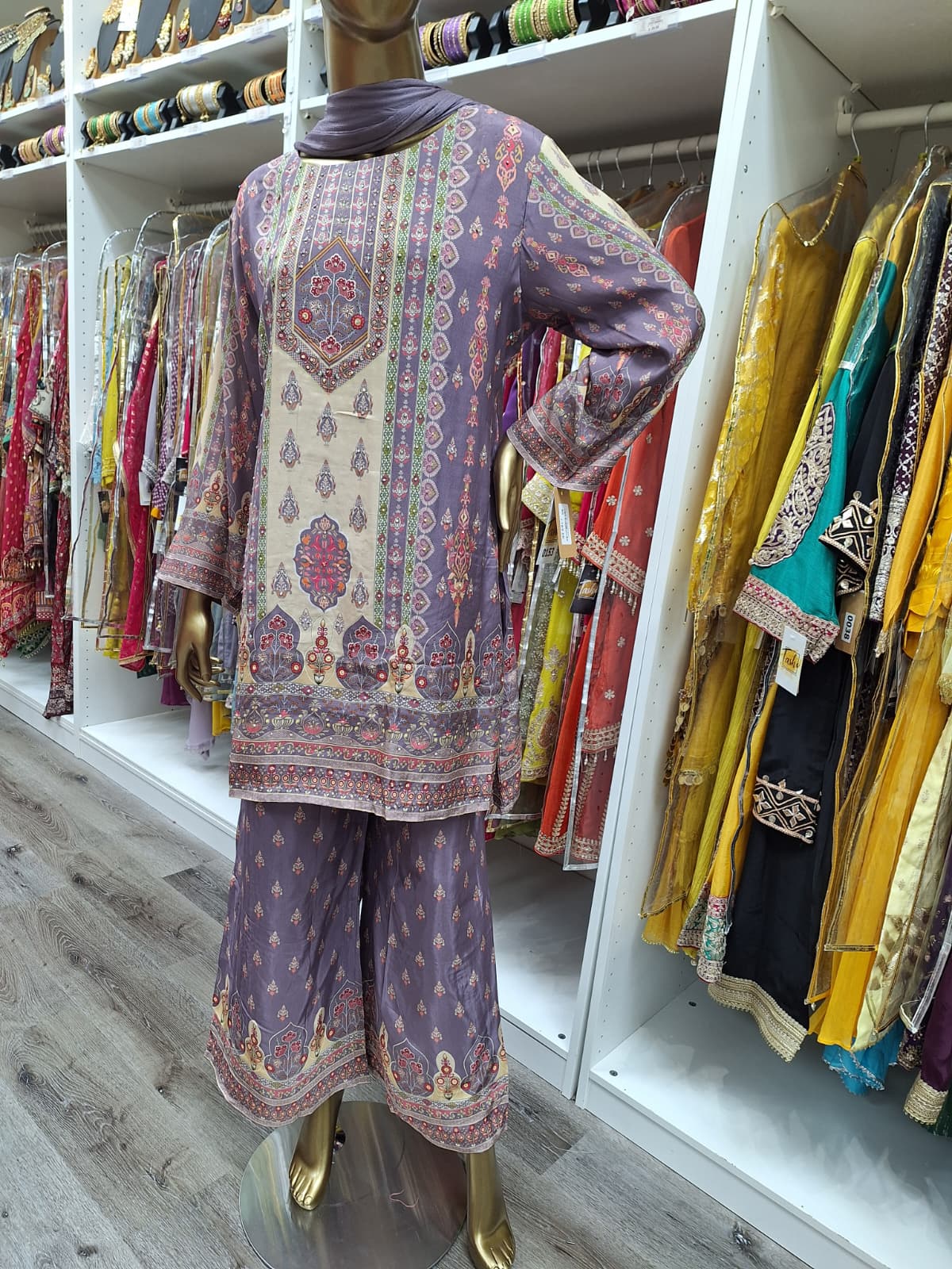 #RegalInRustic #PrintedPerfection #MughalMuse #EthnicElegance #DesiChic #SouthAsianStyle #SubtleAndStunning #PrintedGrace #BohoTradition #PurplePower