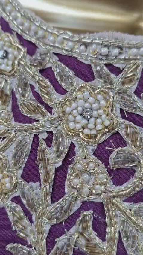 Step into royalty with this regal purple ensemble, adorned with golden embroidery and sheer elegance. When tradition meets glamour, the result is pure royalty.