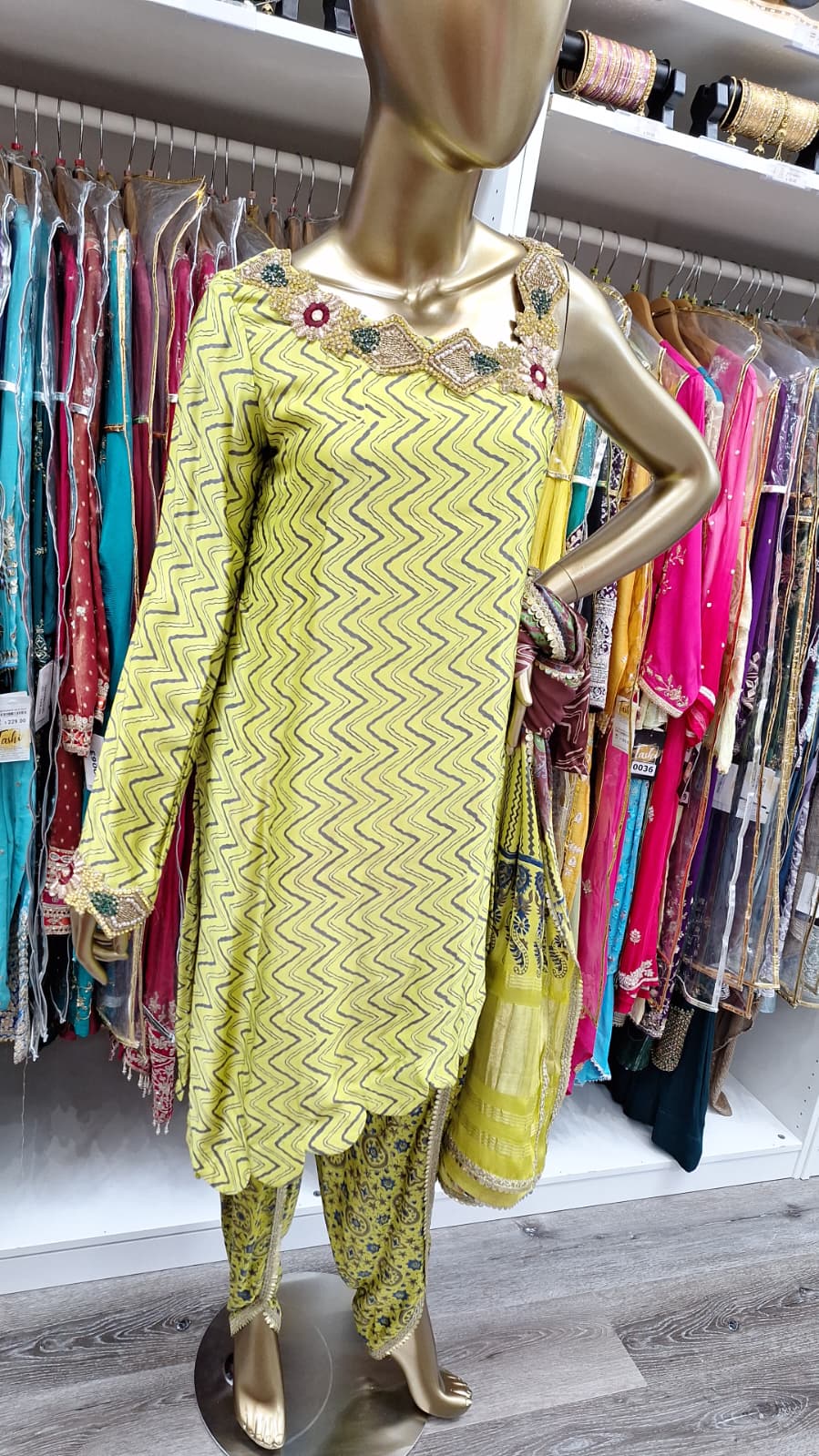 When tradition meets bold style – this lime yellow outfit is all about fresh energy and festive spirit. Pair it with jhumkas and bangles for the ultimate desi diva look.