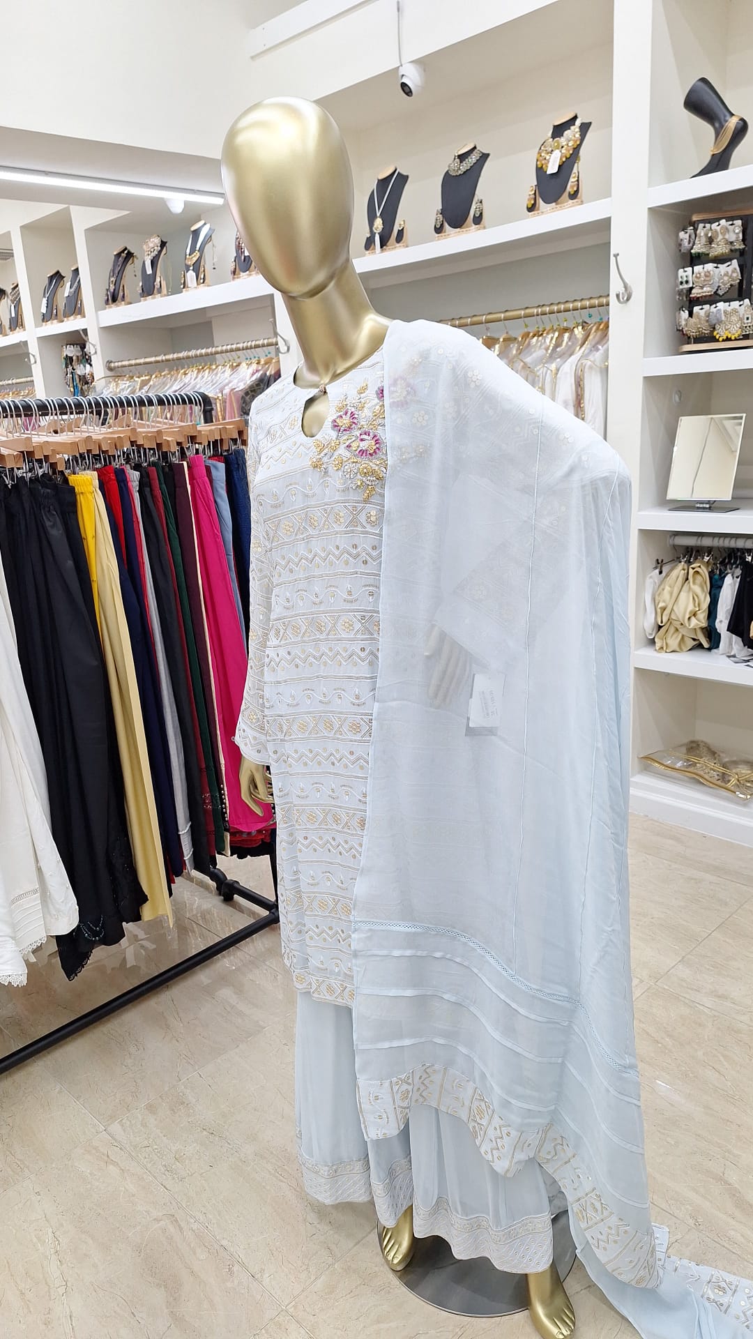 #GoldenGlow #ShararaStyle #ElegantLooks #FestiveWear #PastelPerfection #EthnicChic #DesiGlam #LuxuryPret #TimelessElegance #IndianFashion #TraditionWithATwist