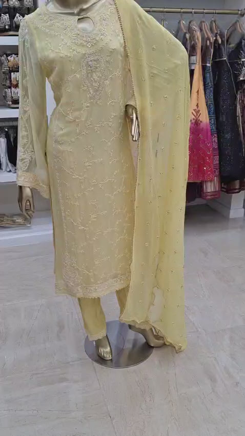 #ButtercreamBloom #PastelElegance #YellowVibes #EmbroideredGrace #DesiDaywear #EidReadyLook #SouthAsianStyle #SummerFestive #MinimalGlam #EthnicInspo #SubtleStatement #ChikankariCharm #ElegantTradition #DesiOOTD #SunshineStyle